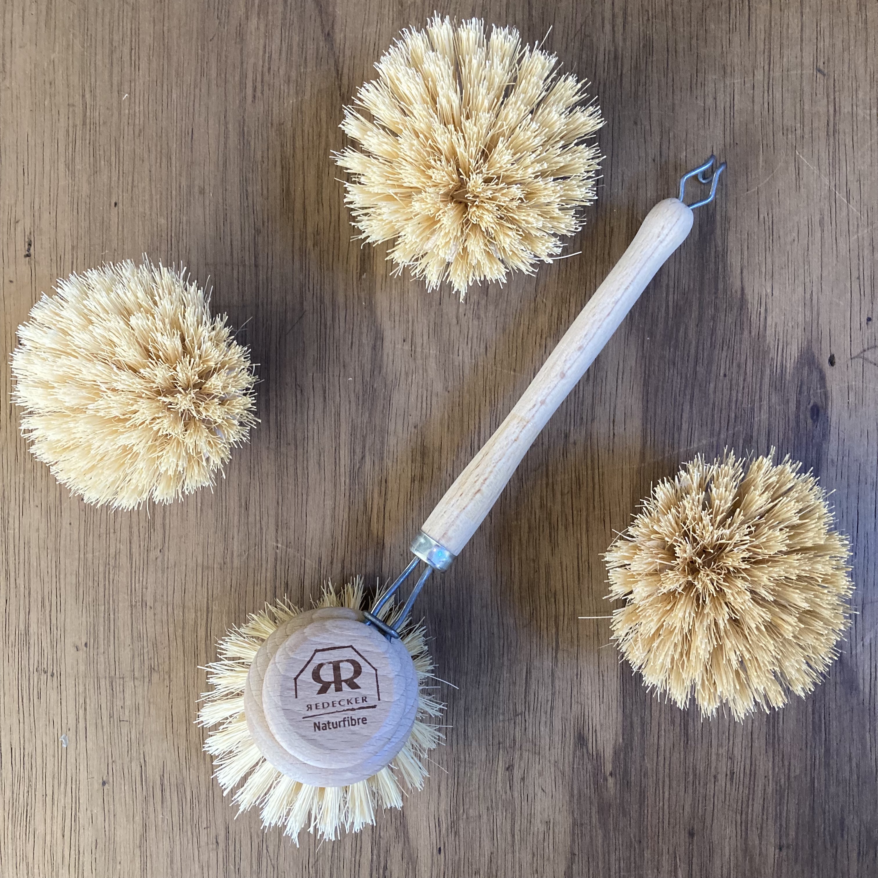 All-natural dishwashing brushes made with beech wood and natural fibre bristles.